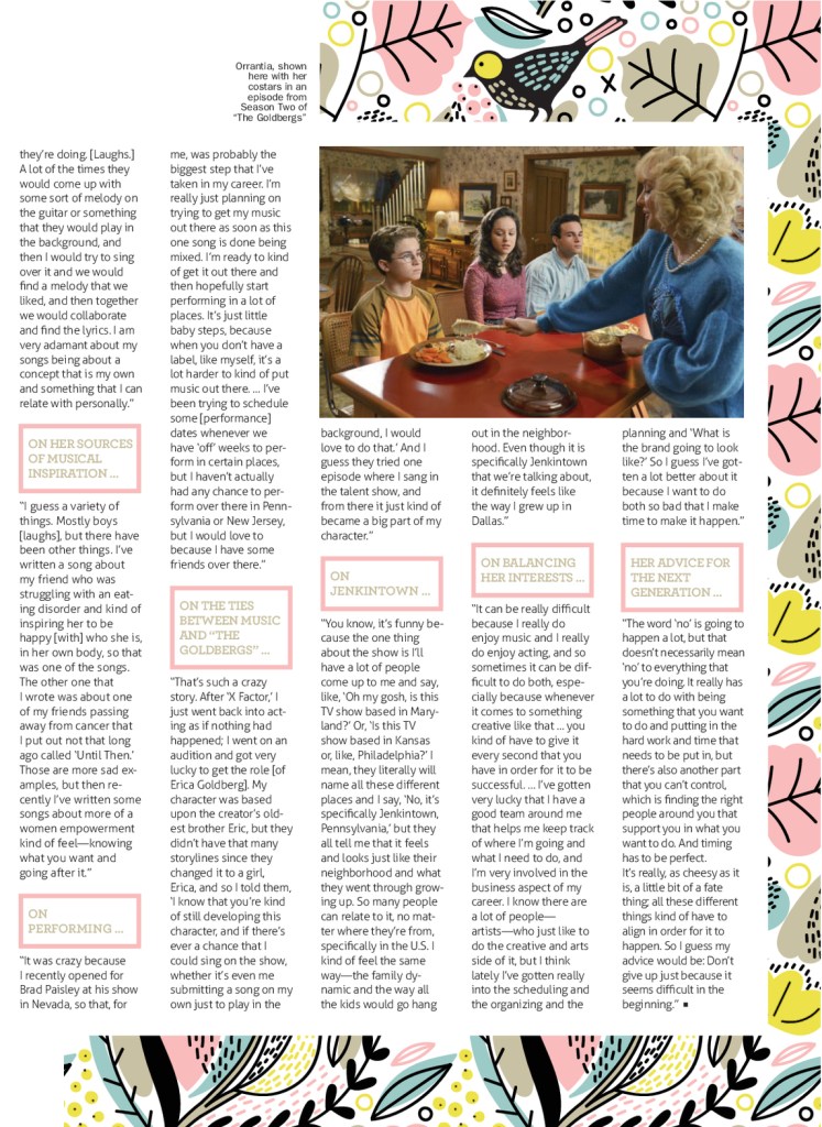Belle Towers: Hayley Orrantia, the Texas-born star of “The Goldbergs,” rises high in the worlds of music and television, Aug. 2016