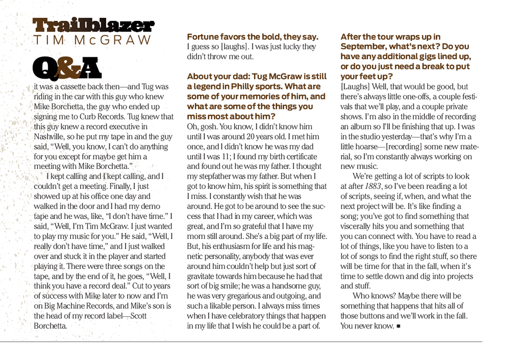 Trailblazer: Whether on stage, on screen, or in the studio, Tim McGraw’s keen mind, kind heart, and strong work ethic shine through, April 2022