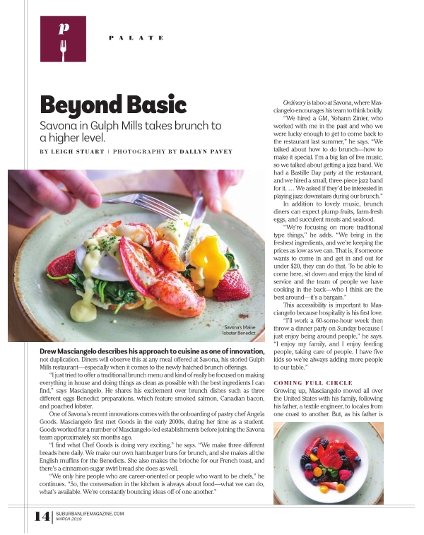 Beyond Basic: Savona in Gulph Mills takes brunch to a higher level, Mar. 2019