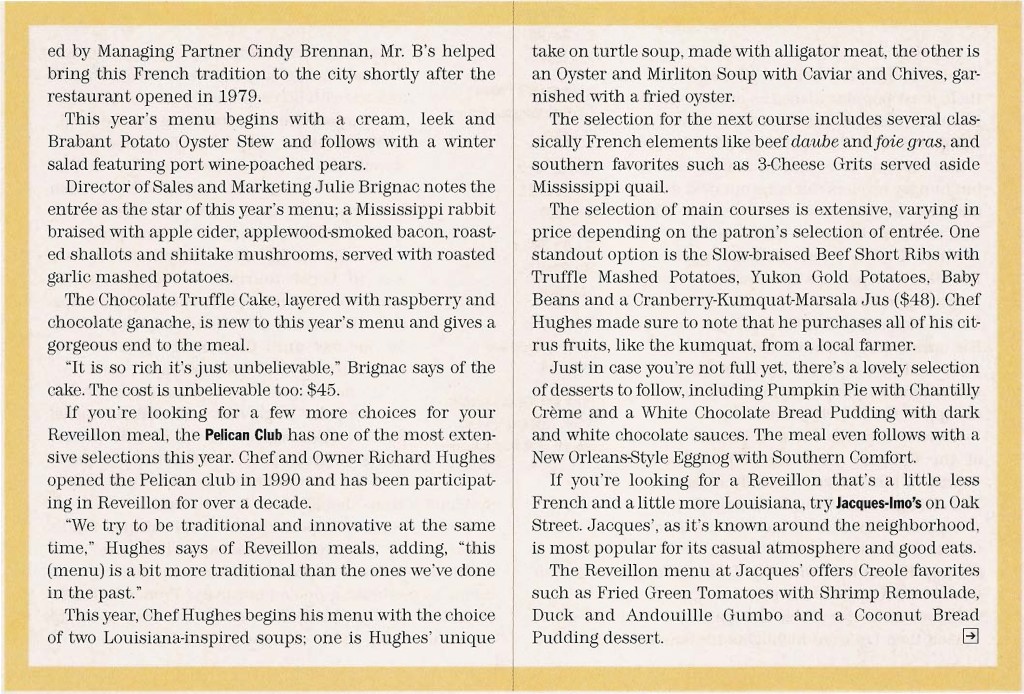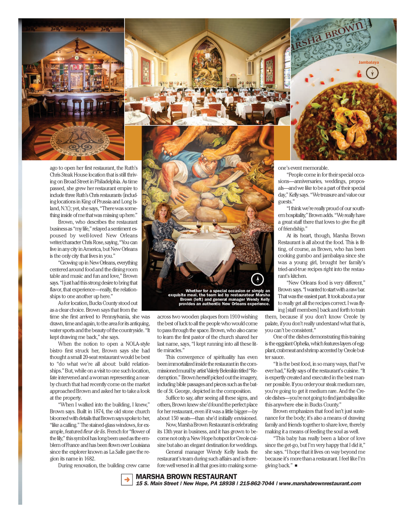 Perfect Recipe: With delectable New Orleans-inspired cuisine, superior service and striking atmosphere, Marsha Brown Restaurant in New Hope has all the ingredients needed to exceed guests’ expectations, Oct. 2015