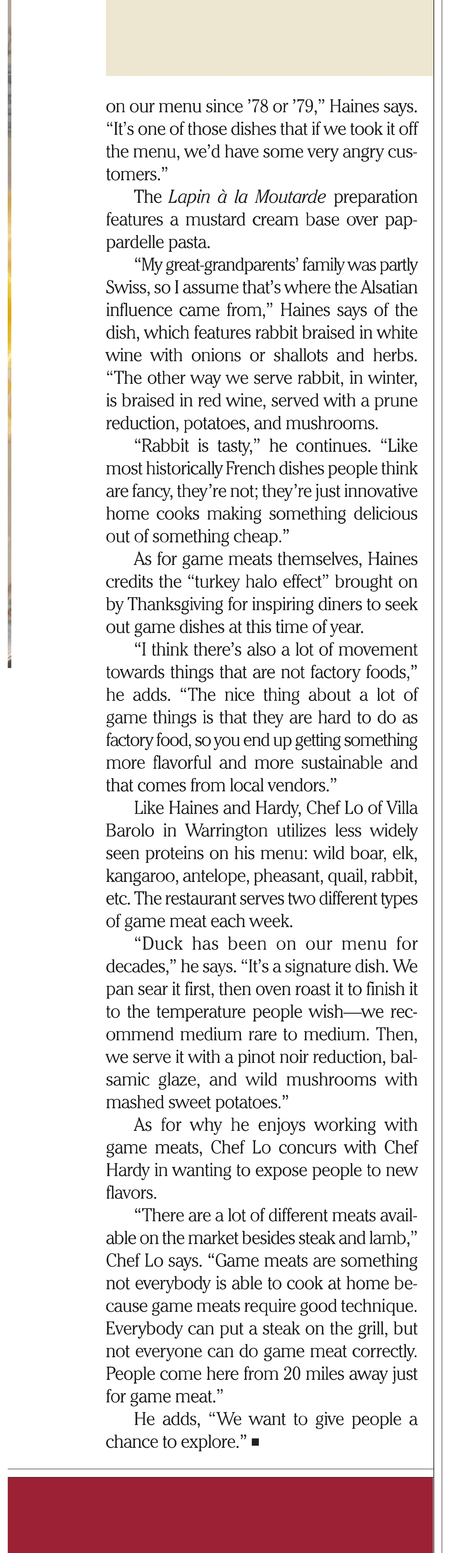 Game On: Autumn ushers in a time for game meats to shine on local menus, Sept. 2022