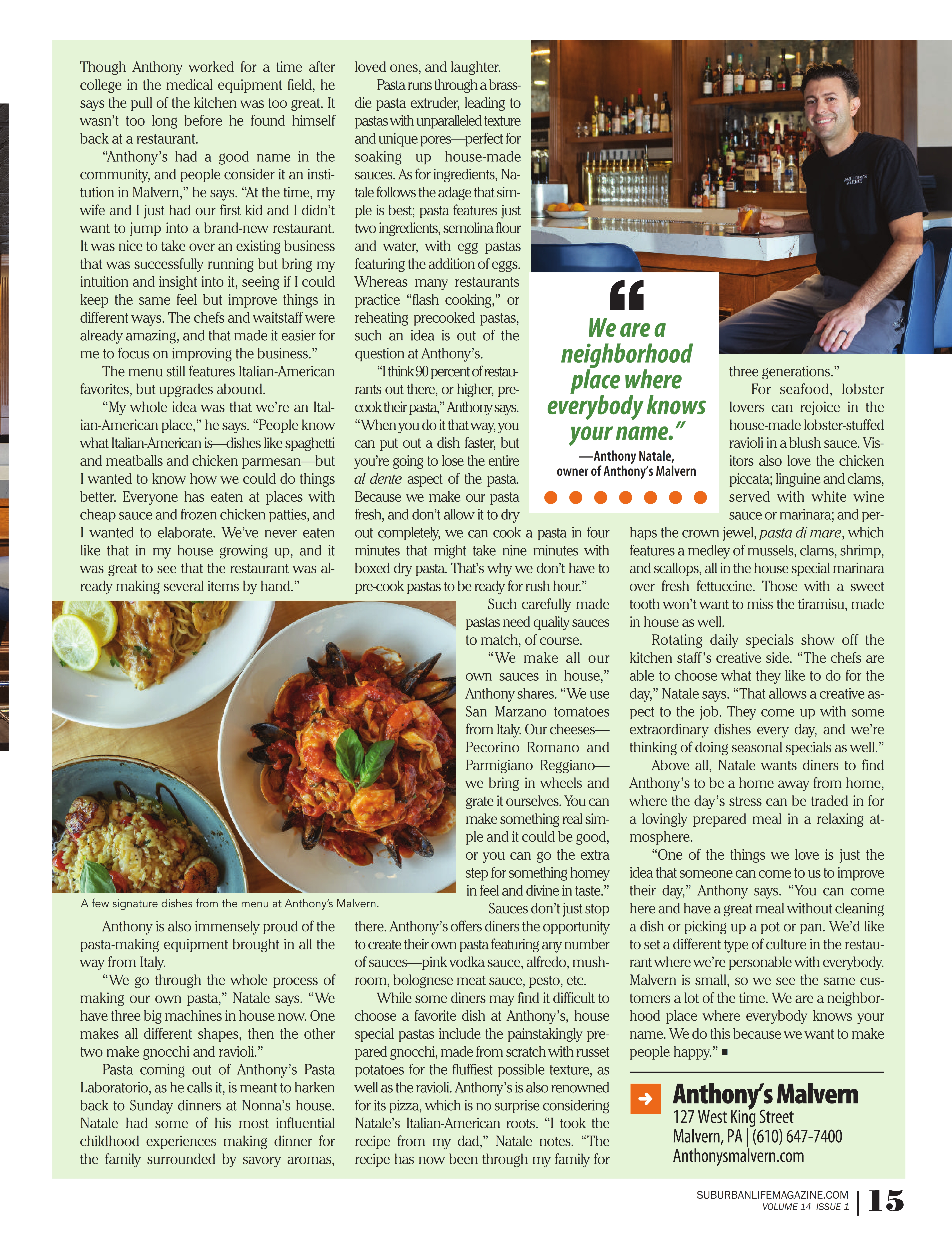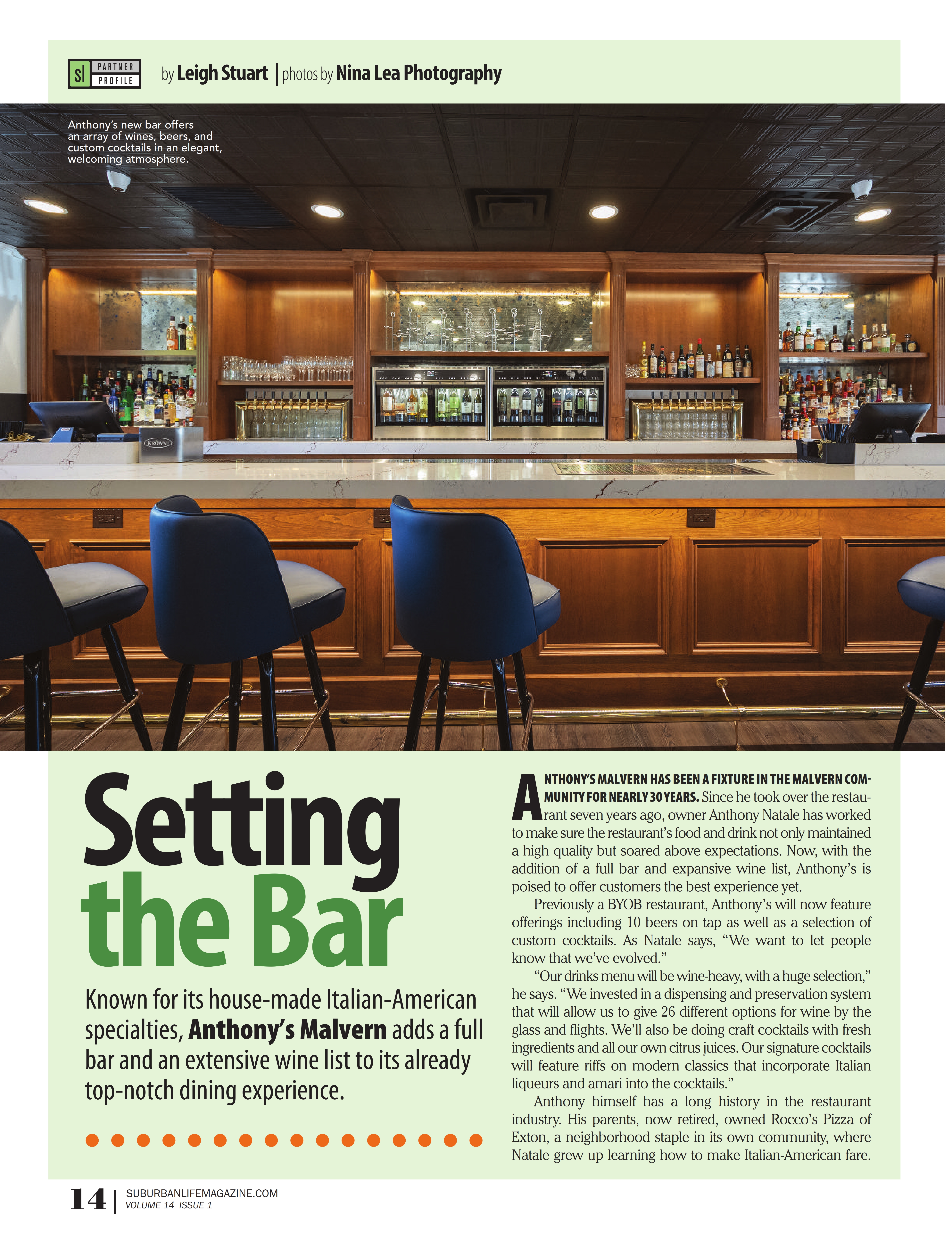 Setting the Bar: Known for its house-made Italian-American specialties, Anthony’s Malvern adds a full bar and an extensive wine list to its already top-notch dining experience, Sept. 2022
