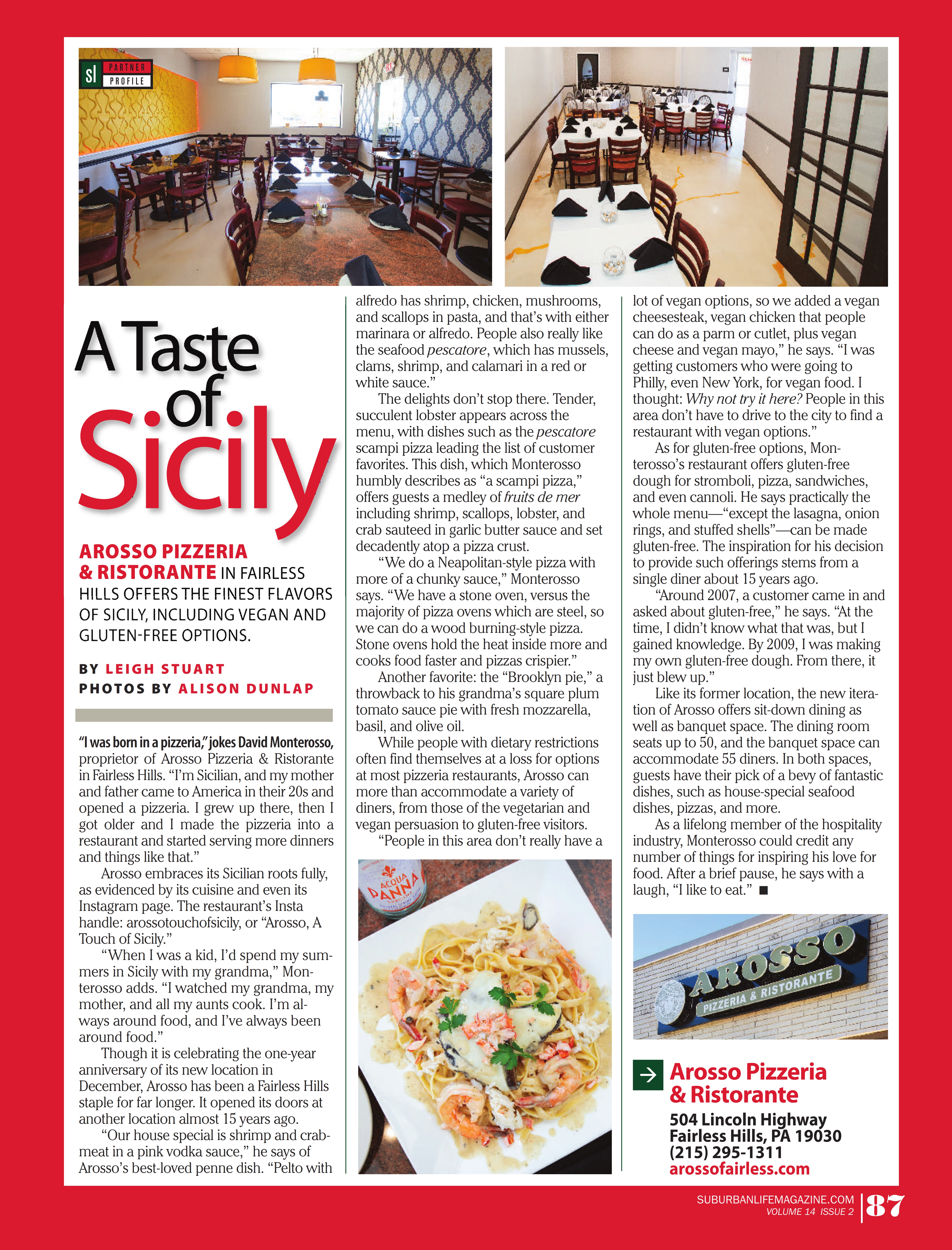 A Taste of Sicily: Arosso Pizzeria & Ristorante in Fairless Hills offers the finest flavors of Sicily, including vegan and gluten-free options, Oct. 2022