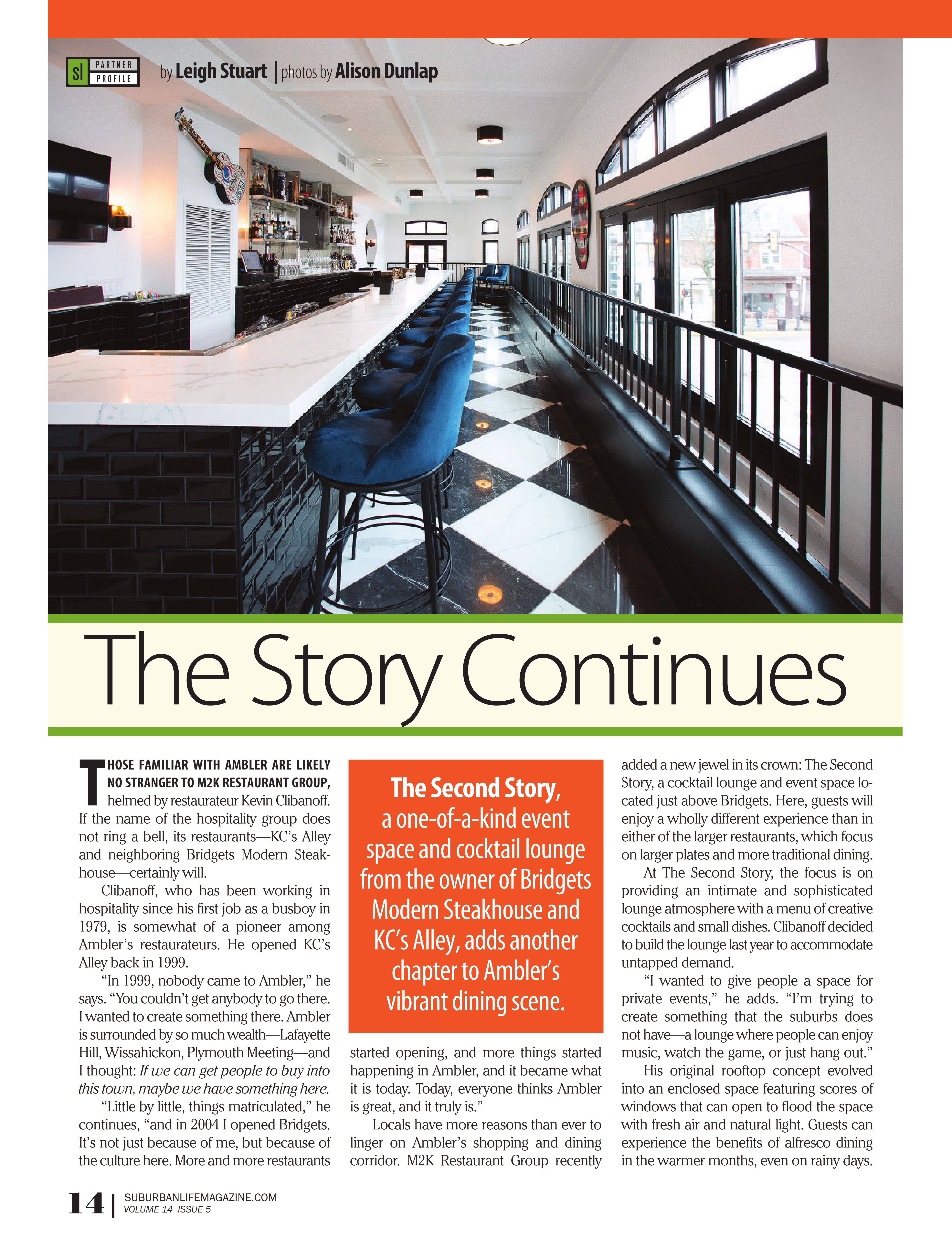 The Story Continues: The Second Story, a one-of-a-kind event space and cocktail lounge from the owner of Bridgets Modern Steakhouse and KC’s Alley, adds another chapter to Ambler’s vibrant dining scene, Jan. 2023