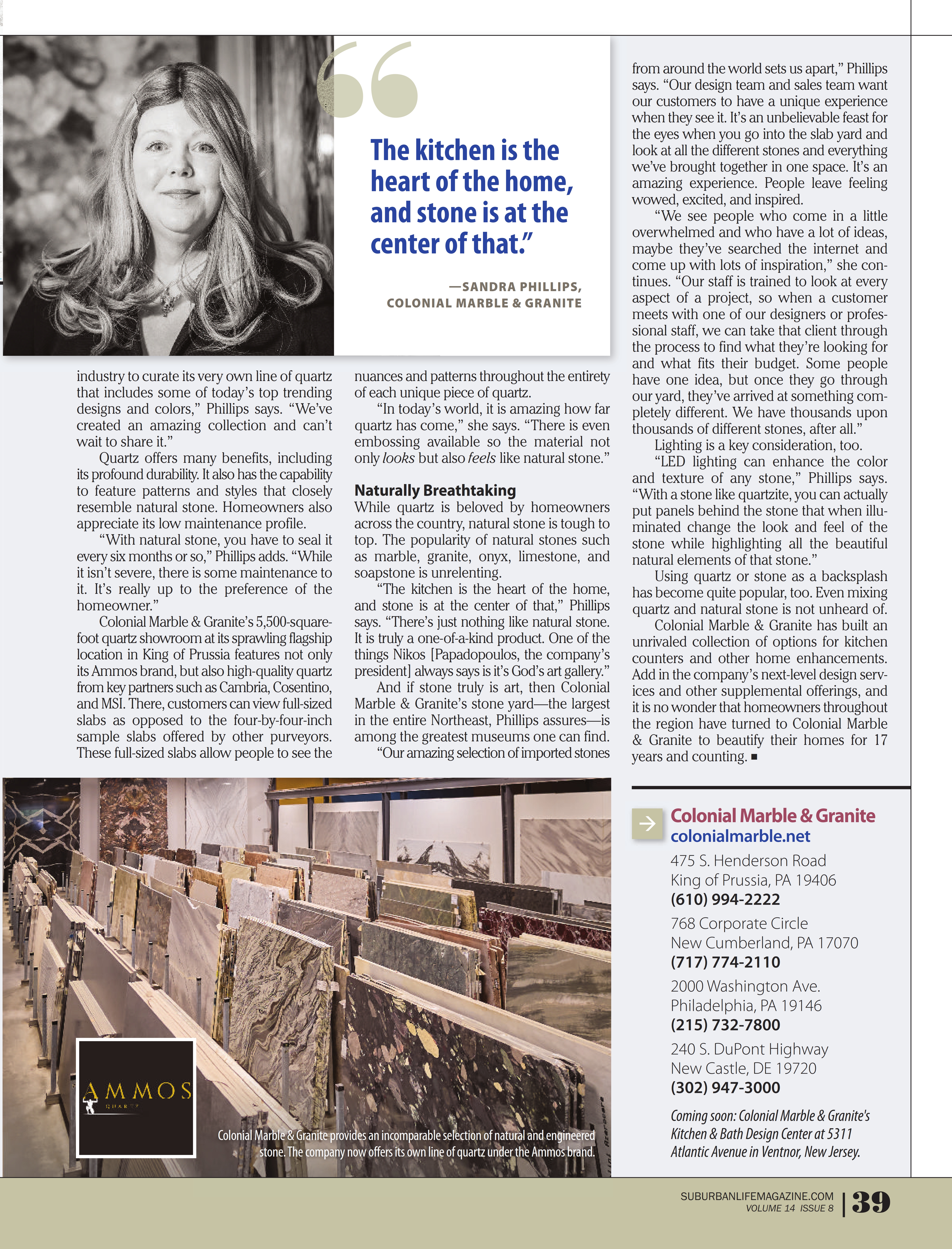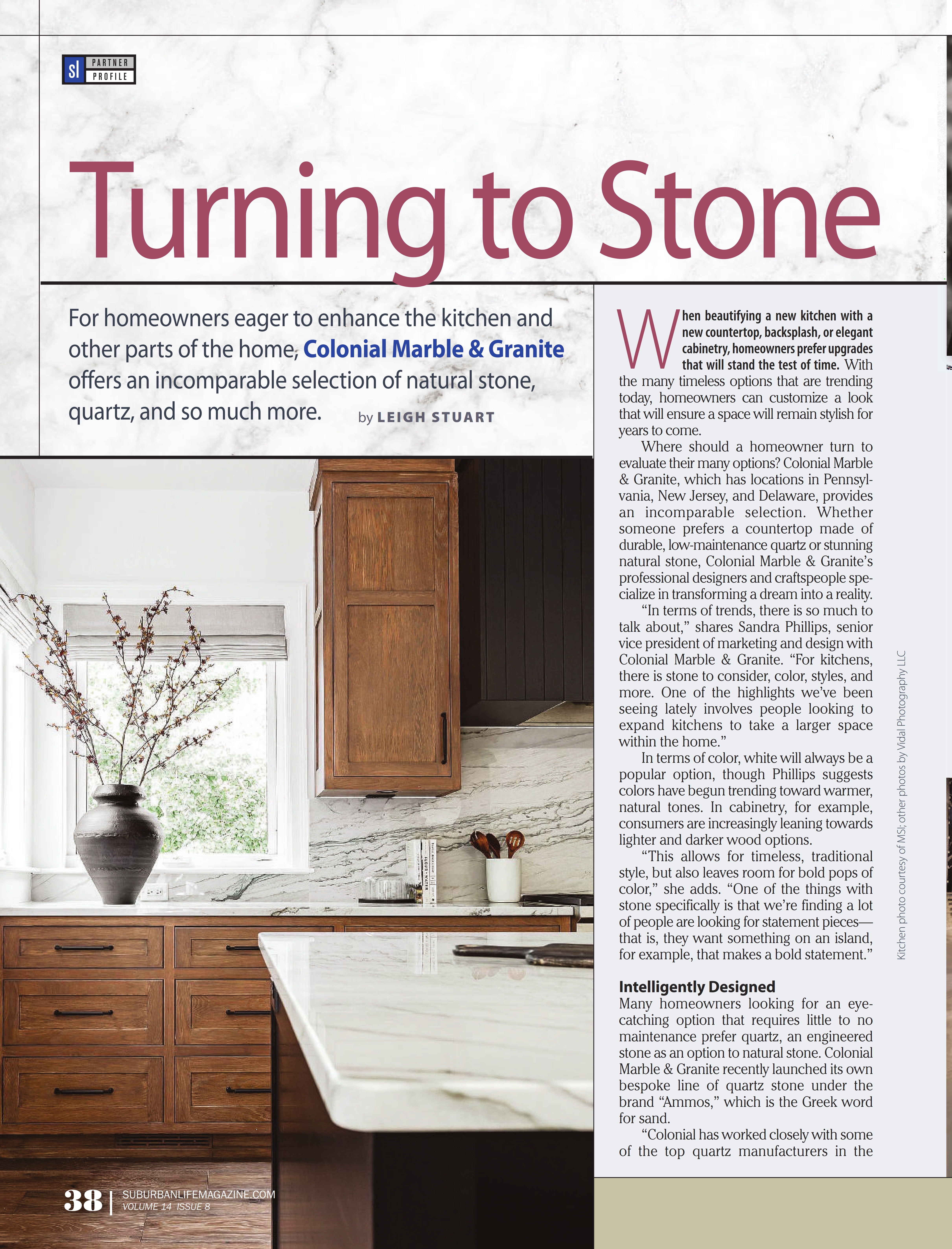 Turning to Stone: For homeowners eager to enhance the kitchen and other parts of the home, Colonial Marble & Granite offers an incomparable selection of natural stone, quartz, and so much more, April 2023
