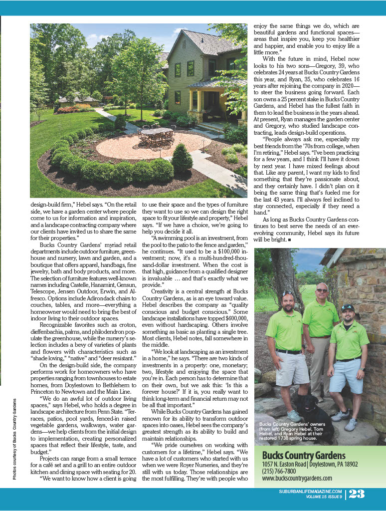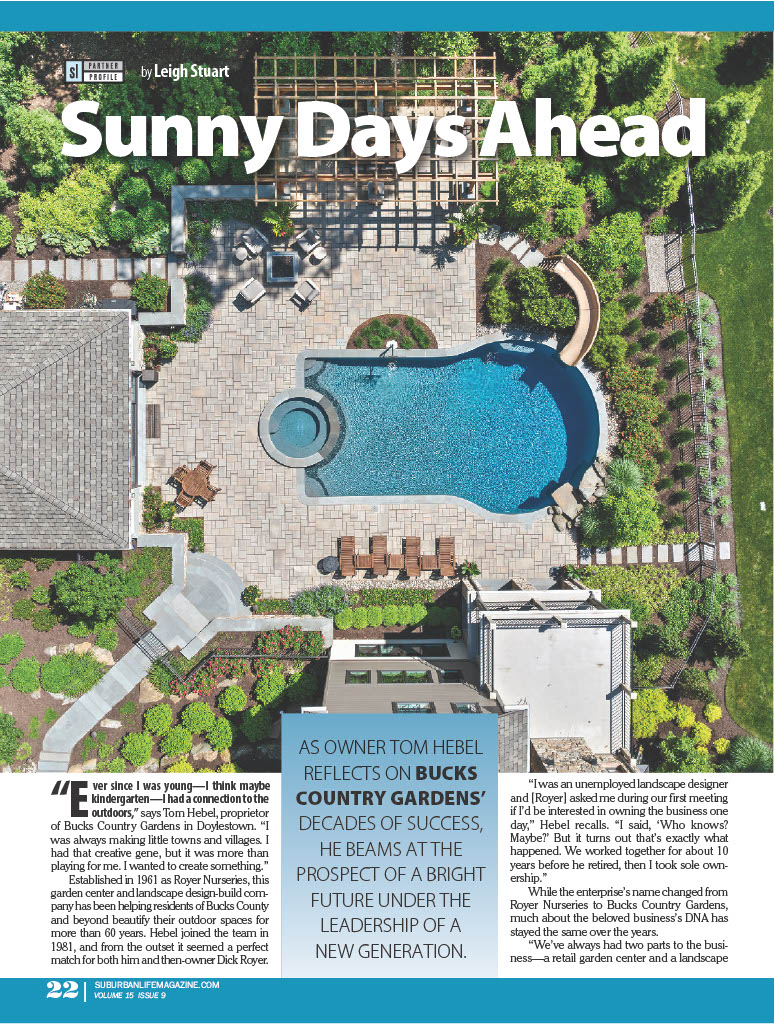 Sunny Days Ahead: As owner Tom Hebel reflects on Bucks Country Gardens’ decades of success, he beams at the prospect of a bright future under the leadership of a new generation, May 2024